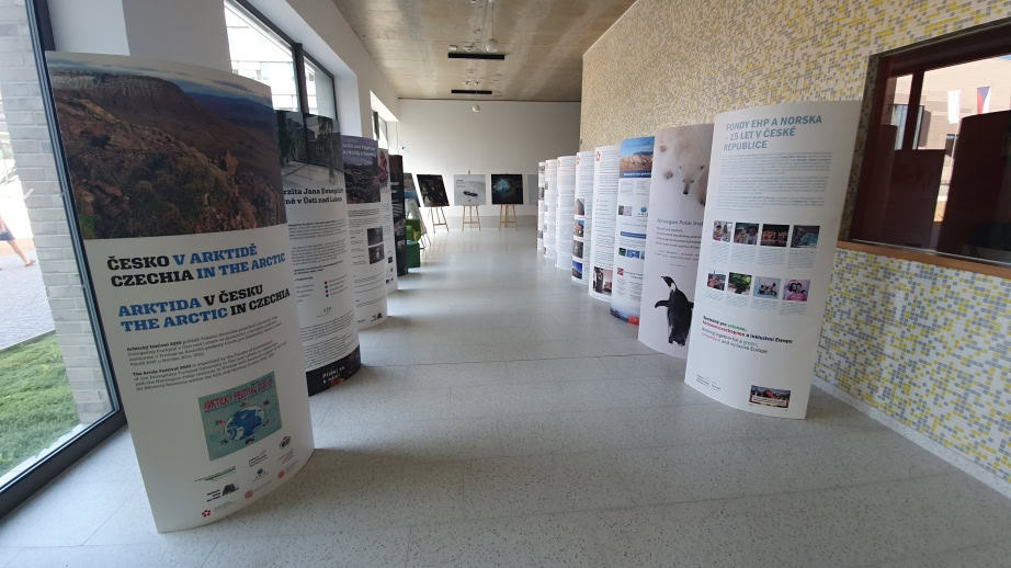 “Czechia in the Arctic / The Arctic in Czechia” is a traveling panel exhibition of Jan Evangelista Purkyně University in Ústí nad Labem, Julius von Payer Institute, the Norwegian Polar Institute in Tromsø, the Centre for Polar Ecology of the University of South Bohemia in České Budějovice, the University Centre in Svalbard and the Scandinavian Studies Department of the Institute of Germanic Studies at Charles University in Prague and the Fund for Bilateral Relations within the EEA and Norway Grants 2014–2021. The exhibition presents the achievements of Nordic and Czech scientists in Arctic research, joint Czech-Arctic research, educational and cultural projects and activities in Czechia and the Arctic, introduces Nordic language teaching and lectures on Arctic indigenous peoples at Charles University, the role of “Norway Grants”, etc.