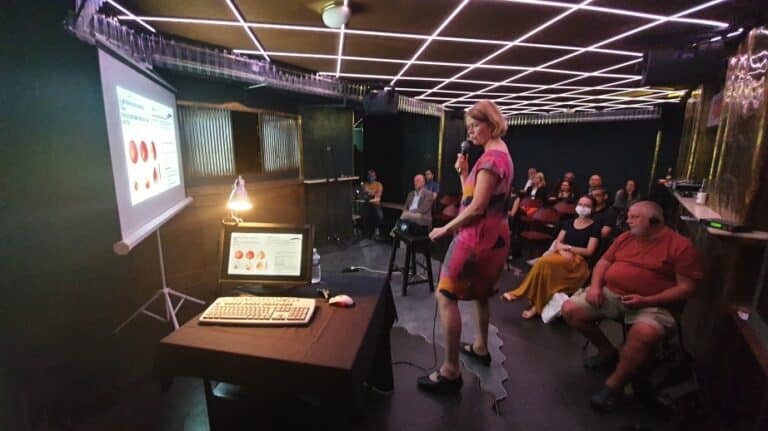 Small Scene: Scientific Conference – expert lectures by 7 lecturers in English à 20 min. with cabin interpretation into Czech (free entry) (photos by Hana Galiová and Zdeněk Lyčka)
